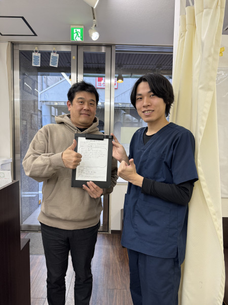 【肩こりや首こりでめまい、頭痛】「頭痛薬を飲む飲む事もなくなり体調の変化もすごく感じている!」仕事環境が変わり、今までと違うストレスにより緊張による肩こりや首こりでめまいや頭痛などがあった。 めまいや頭痛の事を調べているうちにみらい整骨院さんに辿り着き通ってみることにした。(自律神経が乱れての体調不良の気がした為) 初田先生は気さくで話しやすく施術を受けている時間はとても大好きです。何度か通っているうちに体調もあっという間になくなり毎日が調子良いです。 頭痛薬を飲む事も無くなり体調の変化もすごく感じています。 今後も通い続けます。よろしくお願い致します。 |