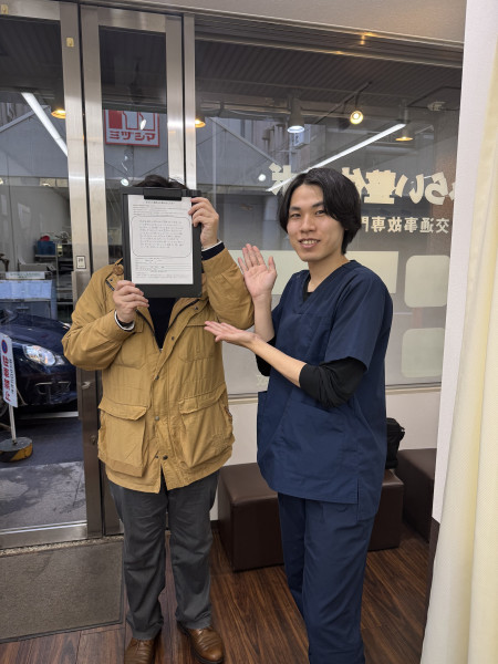 【頭痛、肩こり】「通い続けやすい整体院!」初田先生に年単位でお世話になっています。 先生は言わなくても身体の不調に気付いてくれて身体の状態やアドバイスをしてくれるのでいつも助かっています。 今後もお世話になりたいので先生も身体に気を付けてお過ごしくださいね! (Y、H様 20代 女性)
